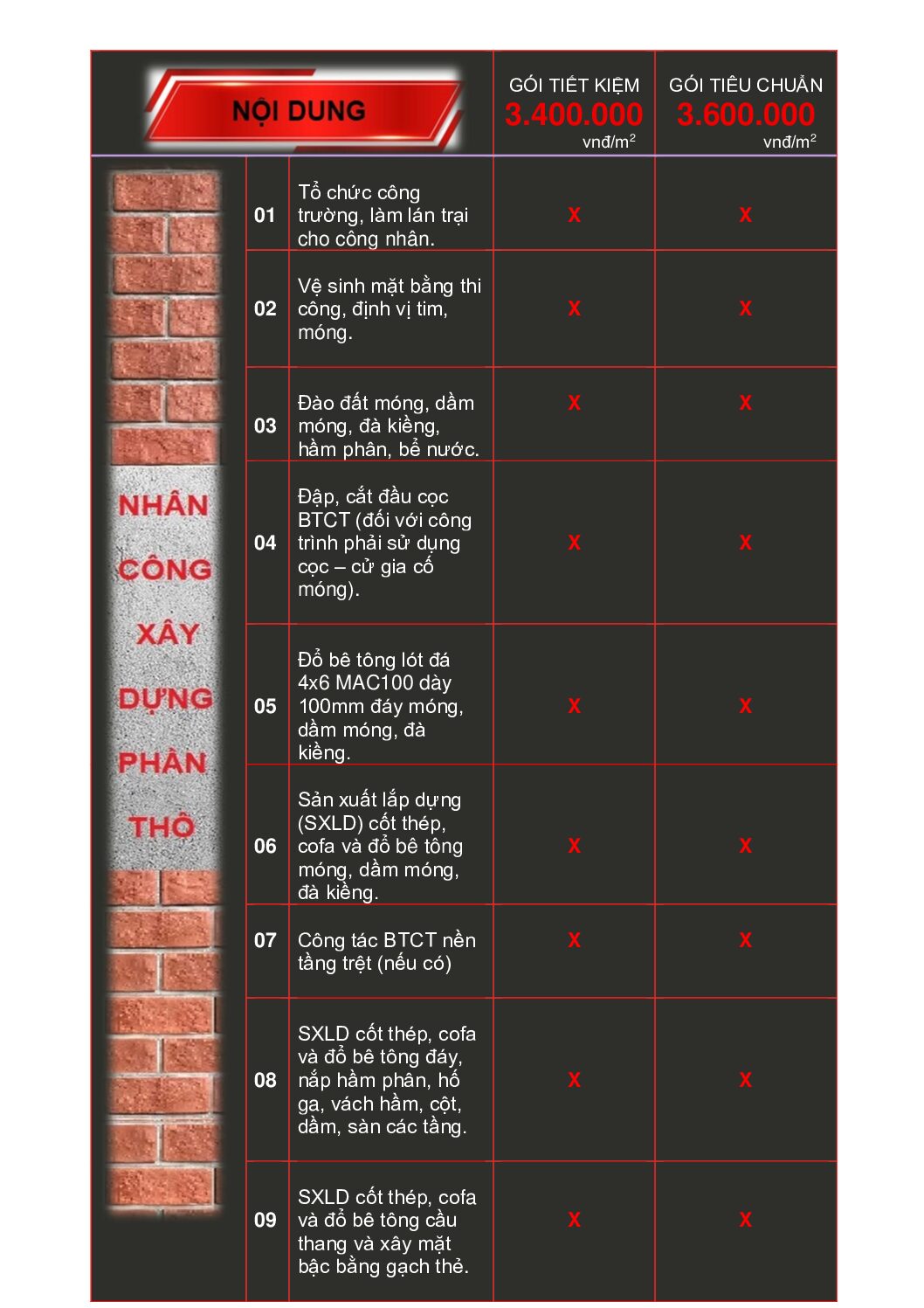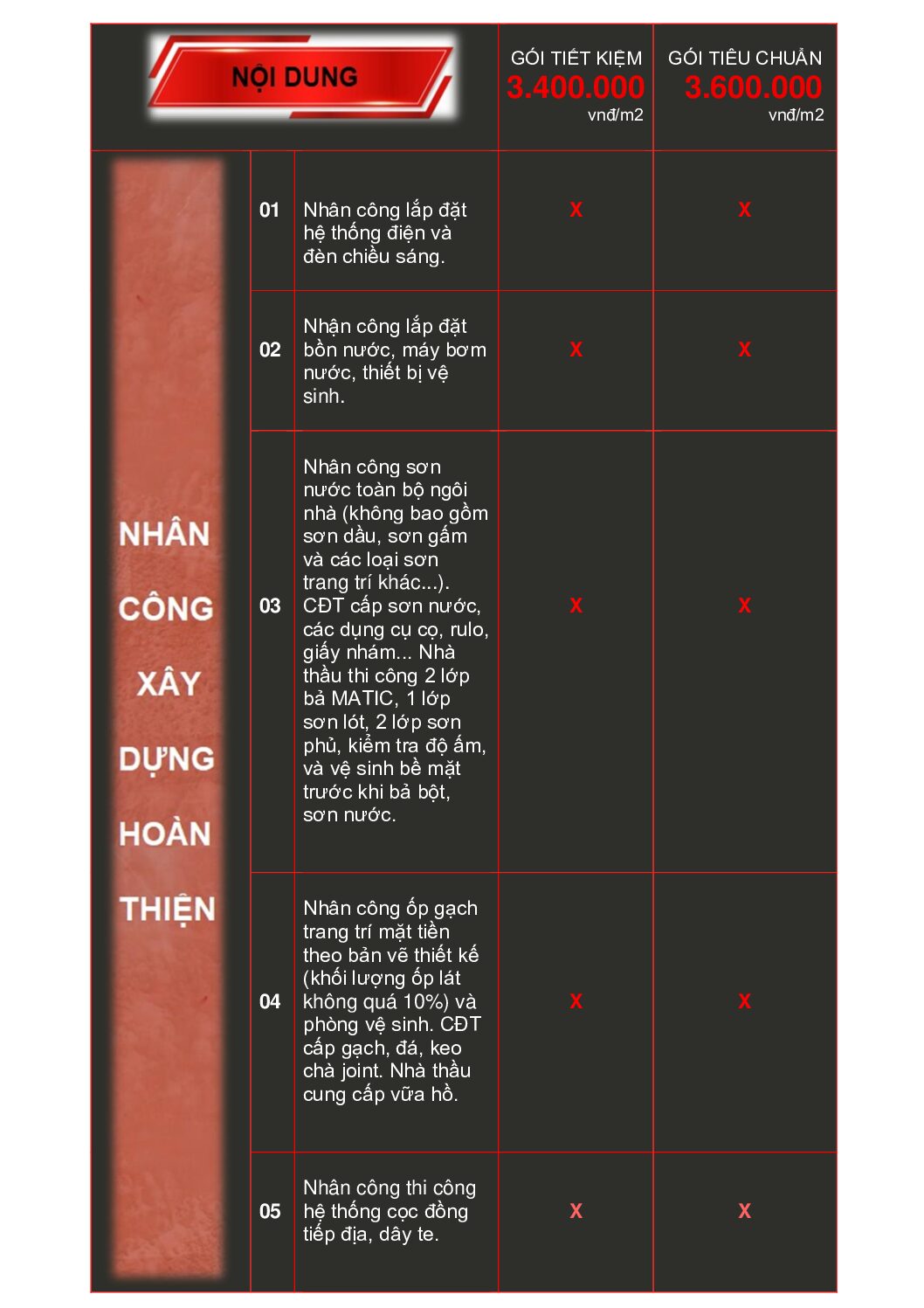 TATACO là một trong những công ty xây dựng uy tín hàng đầu tại Đồng Nai, với hơn 10 năm kinh nghiệm trong xây dựng dân dụng nhà ở. Báo giá thi công phần thô bao gồm trọn gói nhân công + vật liệu xây dựng thô + nhân công phần hoàn thiện.